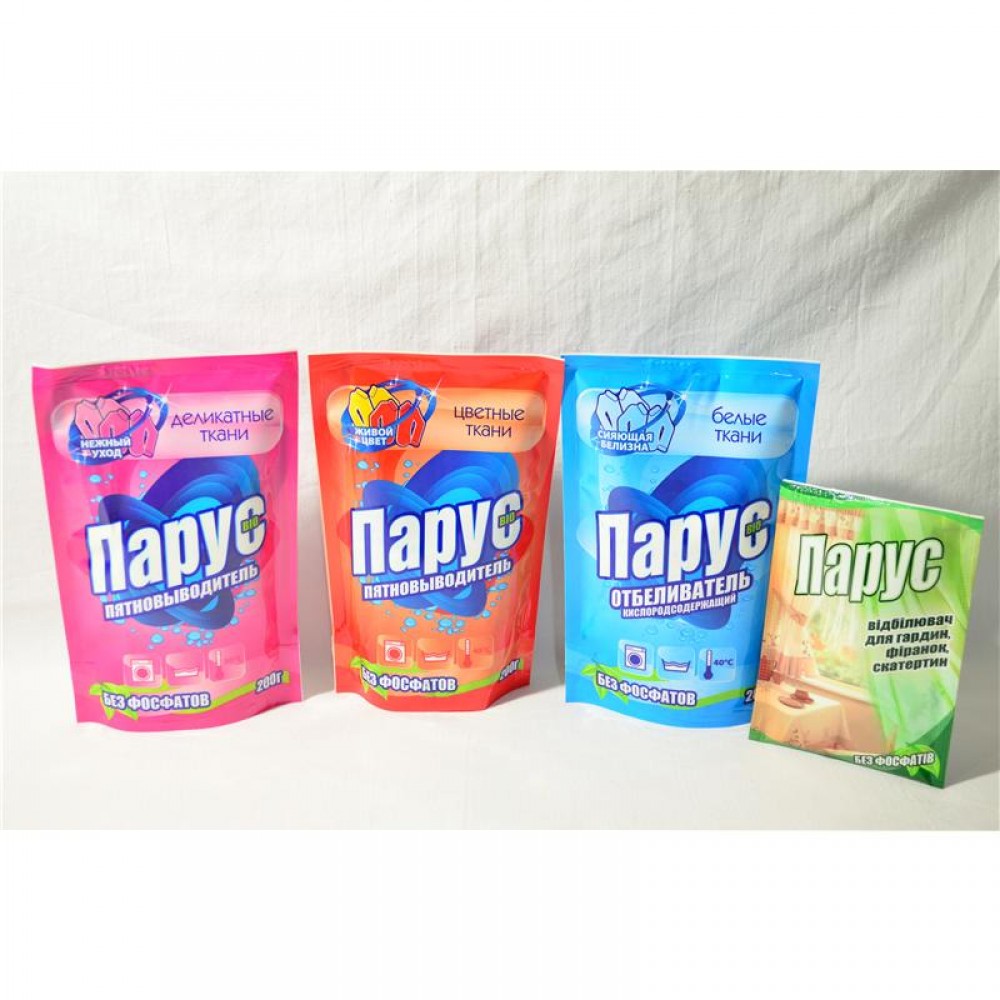 Парус кислородсодержащий отбеливатель удаляет пожелтения, грязь, серый налет, следы от никотина, неприятные запахи. Содержит активный кислород. Специальный продукт, который преобразует обычное моющее средство на мощное и эффективное средство для гардин, тюли и скатертей.